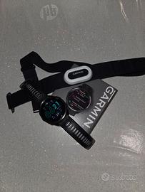 Garmin Forerunner 965 + Garmin HRM Pro Plus Durata batteria: 20 giorni in modalità smartwatch 25 ore in modalità Gps - Gps multibanda - Peso: 52 g - Impermeabilità 5 Atm - Memoria 32 gb - Notifiche smart con risposta direttamente da orologio - Frequenza cardiaca al polso - Altimetro barometrico - Giroscopio - Dimensioni 47,1x47,1x13,2 mm - Misura display 1,4" - Risoluzione 454x454 - Display Corning Gorilla Glass Fascia cardio Hrm Pro Plus: ANT+ Bluetooth Misurazioni: carico di allenamento, recupero, aerobico, anaerobico, VO2 Max, soglia lattica, analisi della tua falcata (cadenza, oscillazione verticale, tempo di contatto con il suolo, rapporto verticale, lunghezza della falcata, equilibrio sinistro/destro del tempo di contatto con il suolo) Cintura regolabile: adattamento e comfort (utilizzabile dentro e fuori dall'acqua) Batteria CR2032 con coperchio del vano batteria che si apre senza attrezzi Impermeabilità 5 ATM Dimensioni 60.0-142.0 x 3.0 x 1.2 cm Dimensioni sensore 29.6 x 53.7 x 8.6 mm Lunghezza della cintura: da 60 cm a 106 cm Peso: 52 g Entrambo acquistati gennaio 2025 Pari al nuovo.