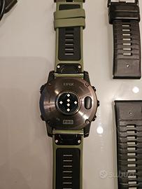 Vendo Epix 51mm Sapphire usato sempre con il vetrino di protezione, qualche segno dell'uso sulla ghiera (panoramica ghiera presente), con cinturino nero e verde nero originale Garmin, includo anche un guscio di silicone di protezione. Acquisto 06.2024, batteria perfetta.
