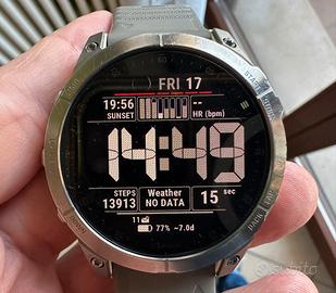 Garmin Epix gen 2 Sapphire Titanium 47 mm con cinturini originale color tortora + 2 di ricambio. Presenta dei segni sulla ghiera dovuti alla delicatezza del materiale