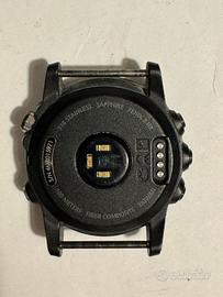 Orologio fornito di scatola e accessori originali. Il cinturino garmin (nero) presenta difetto, manca la fascetta di chiusura. Il cinturino con chiusura a bottone presenta clip per facile rimozione.