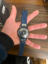 Garmin Fenix 5 (47mm) – Multisport GPS Watch – buone condizioni DESCRIZIONE: Vendo per passaggio a modello superiore lo splendido Garmin Fenix 5, la versione standard da 47 mm. È l’orologio definitivo per chi cerca un compagno affidabile per lo sport, l'outdoor e l'uso quotidiano, grazie al suo iconico design robusto in acciaio inossidabile. L'orologio è perfettamente funzionante, la batteria ha ancora un'ottima autonomia e il software è aggiornato all'ultima versione. CARATTERISTICHE PRINCIPALI: Design Premium: Cassa da 47 mm con ghiera in acciaio inox e vetro minerale ultra-resistente. Display Chroma: Schermo a colori da 1.2" sempre attivo, perfettamente leggibile anche sotto la luce diretta del sole. Sensore Cardio Elevate: Monitoraggio della frequenza cardiaca al polso 24/7 senza bisogno di fascia cardio. Multisport Avanzato: Profili precaricati per corsa, nuoto (fino a 10 ATM), ciclismo, sci, golf, canottaggio e molto altro. GPS e GLONASS: Ricezione satellitare rapida e precisa anche in zone impervie. Metriche Fisiologiche: Analisi del carico di lavoro, stato di allenamento, VO2 Max e tempi di recupero. Smart Features: Ricezione di notifiche (SMS, chiamate, app), controllo musica e compatibilità con lo store Garmin Connect IQ. PUNTI DI FORZA: Autonomia: Fino a 5 giorni in modalità smartwatch e fino a 24 ore con GPS attivo. Robustezza: Costruito secondo standard elevati per resistere a urti e immersioni. Versatilità: Grazie al sistema di cinturini QuickFit, puoi cambiare look in pochi secondi passare dalla palestra a una cena elegante. STATO DELL'OGGETTO: Smartwatch compresa di scatola originale, cavo di ricarica originale e tutti i libretti d’istruzione. Piccolo graffio sul vetro poco viabili e normali segni di usura sulla ghiera.