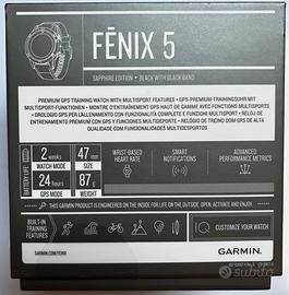 Garmin fenix 5 sapphire edition. Perfettamente funzionante. Qualche graffio sulla cassa. Cinturino sostituito e cinturino di ricambio.