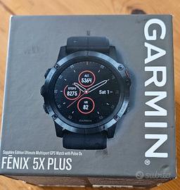 Orologio Garmin Fenix 5x plus 51mm, vetro zaffiro. In ottimo stato a parte il cinturino con un buco saltato. Solo piccoli segni sulla ghiera, vetro perfetto. Perfettamente funzionante in tutte le funzioni. Vendo solo per passaggio a modello superiore per avere maggior autonomia di batteria.