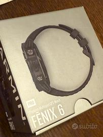 Fenix 6 Pro in buone condizioni. La batteria ancora garantisce almeno una settimana - dieci giorni di uso continuato. Da qualche tempo non funziona la vibrazione, ma per il resto va benissimo. Fornisco con scatola, accessori e ricevuta di acquisto.