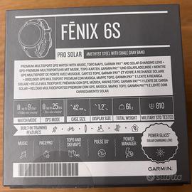 Garmin Fenix 6s PRO SOLAR aprile 2021, in ottimo stato, cinturino nylon, cinturino silicone (abbastanza usurato) e cavo carica batteria originali Garmin.