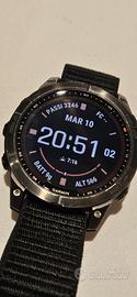 Garmin fenix 7 Solar, Smartwatch con ricarica solare, 47mm, Display 1,3", Touchscreen, 30 Sport, GNSS multi-band, Cardio, SpO2, Mappe, Musica, Garmin Pay, Autonomia fino a 22 giorni (Slate Gray & Black) CONDIZIONI ESTETICHE: Ottime condizioni, perfettamente funzionante Cinturino: Originale e igienizzato e secondo cinturino a strappo come da foto CARATTERISTICHE PRINCIPALI: Power Glass: Ricarica solare per un’autonomia della batteria incredibile Mappe TopoActive: Navigazione cartografica dettagliata al polso Multisport: Perfetto per corsa, bici, nuoto, sci e molto altro Monitoraggio Salute: Cardio, SpO2, stress e recupero 24/7 COSA RICEVERAI: Garmin Fenix 7 Solar Scatola originale integra Cavo di ricarica originale Secondo cinturino a strappo PERCHÉ COMPRARLO? L’orologio è perfetto, mai un problema software o hardware, per l'outdoor e l'attività sportiva è il non plus ultra che offre il mercato. Lo vendo solo per passaggio a modello superiore. È pronto all'uso, già resettato e scollegato dal mio account Garmin.
