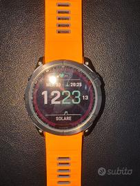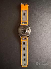 Vendo Garmin Fenix 7X Sapphire Solar Edition, Titanium 51mm del 2022 causa passaggio a modello più recente. Prezzo non trattabile. Orologio perfettamente funzionante, normale usura come da foto. Cavo di alimentazione, cinturino originale nero, cinturino arancione in silicone e cintuirino arancione in tela. No confezione originale.