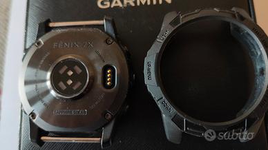 Orologio sportivo in perfetta efficienza e condizioni: Garmin Fenix 7, nella versione grande, 51mm, vetro zaffiro, finitura colore titanio e ricarica solare. Da me usato se faccio attività fisica (che devo ridurre) e per controllare il cuore; mi sto accorgendo che ultimamente l'uso sempre meno. Vetro particolarmente resistente, comunque protetto con pellicola salvaschermo, e protetta pure la ghiera metallica con guarnizione morbida. Due cinturini in silicone e un braccialetto metallico (non originale) da sballare, provvisto di attrezzino per sfilare i perni delle maglie.
