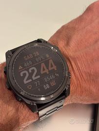 Sportwatch Garmin Fenix 8x 51mm Solar Sapphire, tenuto maniacalmente , sempre con vetro temperato protettivo anche se quadrante zaffiro. Cinturino originale mai utilizzato. 4 cinturini sostitutivi , 1 in acciaio. Scatola e cavo originali. Impeccabile