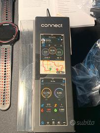 Si connette al cellulare via bluetoot e funziona come smartwatch; grazie all’app Garmin si possono vedere tutte le metriche e personalizzazioni.