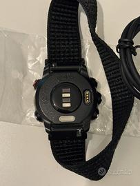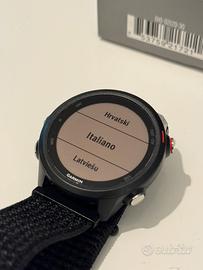 Vendo GarminForerunner245Music in ottime condizioni, perfettamente funzionante. Ideale per chi vuole un orologio da corsa con GPS, metriche avanzate e la possibilità di ascoltare musica senza portare lo smartphone. -Sensori & metriche: Cardiofrequenzimetro al polso (3a gen “Elevate”), pulsossimetro (SpO₂), GPS + GLONASS, accelerometro, etc. -Metriche avanzate per la corsa: Cadenza, lunghezza passo, tempo di contatto al suolo, oscillazione verticale, equilibrio piede dx/sx (alcune metriche attivabili con sensori esterni) -Funzioni allenamento: VO₂ max, Training Status, Training Load, Effetto allenamento, avviso recupero, suggerimenti corsa . -Memoria e Musica: 3,5 GB di spazio interno (circa 500 brani) per ascoltare musica direttamente dall’orologio, collegato a cuffie Bluetooth. -Autonomia: Fino a 7 giorni in modalità orologio + attività + notifiche; Con GPS + musica: circa 6 ore; Con GPS senza musica: fino a 24 ore -Impermeabilità: 5 ATM (resiste fino a 50 m) – utilizzabile anche in acqua (piscina, nuoto) •L’orologio è stato utilizzato con cura, senza graffi importanti sul vetro orizzontale del display. •Cinturino NON originale incluso (in nylon) •Cavo originale incluso. Vendo per passaggio ad altro modello Garmin. Prezzo trattabile