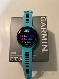 Orologio sportivo Garmin 265 Forerunner AMOLED in ottime condizioni, nessuno striscio, praticamente usato solo per la corsa, due volte per piscina e acque libere. Completo di scatola originale, carica originale + un cavo di ricarica extra. Perfetto per ogni attività sportiva sia all'esterno che indoor.