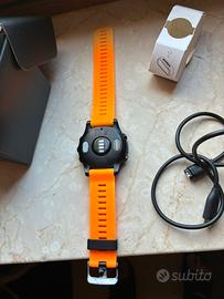 Stato eccellente. Usato solo per sport mai come smartwatch, poche ore di utilizzo. Caricato mai a corrente, sempre al computer mai sbalzi corrente. No graffi. Ricarica e due cinturini.