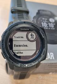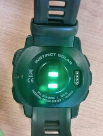 Orologio smartwatch Garmin Instinct con carica solare Connessione Bluetooth, GPS con diverse funzioni sportive, misurazione impermeabile fino a -100m Cinturino verde militare in silicone. Ottimo prodotto in perfette condizioni Confezione e cavetto per ricarica originali