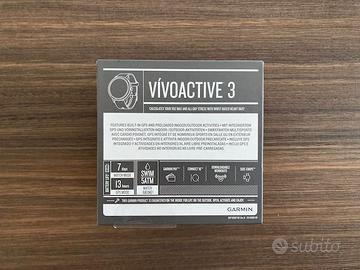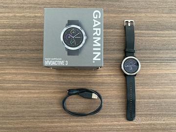 Vendo Garmin Vivoactive 3, smartwatch sportivo con GPS integrato. - GPS integrato per corsa e attività outdoor - Cardiofrequenzimetro al polso - Monitoraggio attività e sport - Notifiche smart - Completo di: scatola originale, cavo di ricarica, manuali