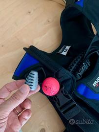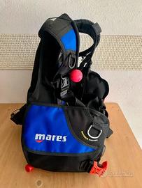 Jacket Mares Prime taglia M, schienalino monopiastra con imbottitura, tasche capienti, sacche zavorra integrare, 2 valvole sovrapressione, peso 2,8 Kg. Valvola scarico manuale aria personalizzata con pallina da golf fucsia con alta visibilità anche in profondità (pomello originale disponibile). Ottime condizioni, come nuovo, utilizzato per 20 immersioni.