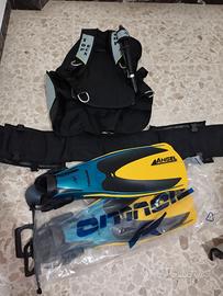 Vendo GAV datato ma mai utilizzato marca Tigullio taglia m/l e pinne Tigullio taglia m/l regolabili. In regalo palloncino di segnalazione e una muta completa Mares utilizzata un paio di volte.