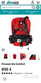 Il Finnsub Fly 16 è un'ala subacquea progettata per l'uso con bombole singole fino a 18 litri.Ha una forma a ferro di cavallo per ridurre la resistenza e offre una spinta di 16 kg.Il materiale utilizzato è Cordura 2000 per l'esterno e Cordura 500 o un film in poliuretano per la camera interna.È compatibile con diverse piastre dorsali e imbracature e ha un inflatore con valvola di scarico rapido (REV) o un tubo flessibile.Il Finnsub Fly 16H è approvato CE. Incluse tasche per zavorre. In ottimo stato perfettamente funzionante.