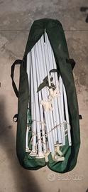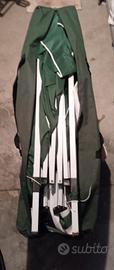 Vendo Gazebo 200x300 cm struttura in acciaio in ottime condizioni per fiere: Pic Nic, Campeggio. Esterno, Giardino, Piscina, Mercatino ecc….. Usato una volta. Solida struttura a 4 pali di ben 25 metri in metallo di altissima qualità con verniciatura a polvere di colore verde. Rivestimento realizzato interamente in tessuto PE impermeabile, anti pioggia e anti vento in un elegantissimo colore bianco. Perfetto per qualsiasi spazio esterno , la soluzione ideale per giardini terrazzi ma anche per stand, fiere o gazebo da campeggio, infatti grazie alle pratiche giunture in plastica a scatto questo gazebo non necessita di viti nel montaggio. CARATTERISTICHE : •Montaggio: Facile e rapido, l’uso libretto •Resistenza: Adatto a venti moderati e alle intemperie •Garanzia: 2 anni contro difetti di fabbricazione - Decorare le aree estive di bar e ristoranti - Copertura per campeggio - Organizzare eventi all'aperto - Padiglioni commerciali ed espositivi - Attrezzature per mostre - Protezione dal sole - Mercatino non spedizione solo ritirare Garanzia 2 anni Prezzo non trattabile vendo 150£