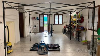 Vendo gazebo 24 MX per sport motocross enduro trial o avviamenti sportivi vari usato poco con tetto e tre pareti chiudibili regolabile in altezza misura 3mt x3mt