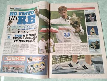 VENDO GAZZETTA DELLO SPORT DEL LUGLIO 2025 DELLA VITTORIA DI SINNER A WIMBLEDON 2025