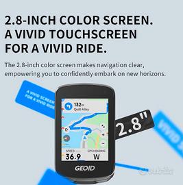 GEOID CC700 Pro Computer da bicicletta GPS Touchscreen da 2,8 pollici poche settimane di vita velocità e odometer: monitora velocità e distanza percorsa. Strava compatibile: sincronizza dati con l'app Strava. Navigazione GPS: orientamento preciso durante il ciclismo. Mappa globale: mappa completa per ciclisti in tutto il mondo. GPS 2.8 pollici: schermo touch per una facile navigazione.