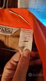 Giacca originale americana della marca Walls, realizzata in cotone ad alta densità, molto robusta. Presenta cacciatora nella parte posteriore e varie tasche, quelle anteriori presentano le celle elasticizzate porta colpi. Sul cartellino è riportato "irregular" in quanto presenta una semplice scucitura a ridosso della cerniera nel lato destro della cacciatora posteriore che con due semplici punti di cucitura torna a posto. (visibile da fotografia specifica)