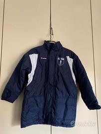 Vendo giacca a vento calcio Lotto con logo squadra di colore blu con inserti bianchi ampi tasconi anteriori e laterali, tasca interna, maniche regolabili, tg. M 11-12 - anni altezza 140-152 cm.