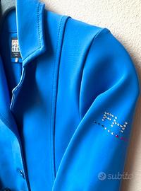 Vendo giacca Equitazione Bambina 10 anni Marca: FH (FOR HORSES) Al pari del nuovo!!!! Giacca da concorso da bambina usata poche volte e ancora impeccabile. La giacca è stata sempre ben conservata come si può vedere dalle rifiniture e non presenta alcun segno di usura. I brillantini sulla manica sono ancora perfetti così come tutte le cuciture. Allego qualche foto per mostrare come risulta indossata. Vendo per cambio taglia. Costo giacca nuova: €198