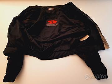 Vendo giacca da moto della SPIKE nera, in poliestere, con maniche staccabili, leggera e comoda per uso estivo. Regolabile la chiusura in vita e polsi con velcro, predisposta per inserire paraschiena. Aperture a cerniera sulle spalle x l'estate. 2 tasche esterne e una interna.