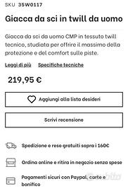 Vendo giacca da sci marca CMP taglia 50 nuova ma senza cartellino. La giacca fa parte della nuova collezione