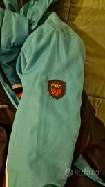 Giacca da sci da uomo firmata CMP, di alta qualità, usata davvero poco silo 3 volte TG 54 ancora con etichetta. Leggera e termoisolante anche in condizioni di elevata umidità, traspirante che garantisce protezione efficace da vento e intemperie, supportata da cuciture completamente nastrate. La giscca è dotata cappuccio staccabile, polsini regolabili in lycra e ghetta interna sull’orlo inferiore per migliorare l’isolamento termico. Presenta inoltre due tasche laterali con zip, 3 tasche interna e una tasca sulla manica, ideale per lo skipass. Un capo tecnico di altissima qualità.. Vendo anche la tuta da sci sempre della stessa marca a soli 40 euro in più. Tuta da sci abbinata alla giacca ovviamente. Prezzo leggermente trattabile visto che è praticamente nuova.