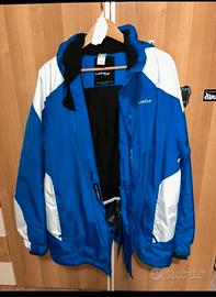 Giacca da sci usata uomo, in ottime condizioni taglia L. Con polsini antineve, taschino skipass, cappuccio rimovibile. Vestibilità over.