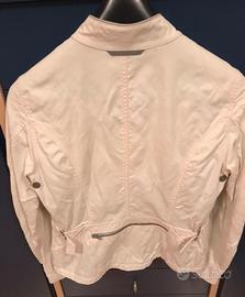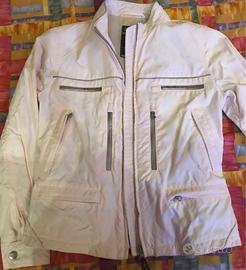 Giacca da donna modello sportivo, tessuto fermo e super resistente , multitasche a scomparsa , full zip con logo, maniche con bottone regolabile , fibbie regolabili in vita, tasca sul retro. Colore bianco con sfumature leggermente rosate . 100% poliammide, anche la fodera interna. Taglia 46. Dai un'occhiata al mio armadio, ci sono tante belle proposte uomo, donna, casa e accessori .