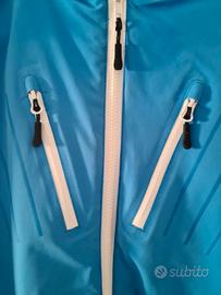 Giacca sci Energia Pura modello Falera come da foto Taglia M ( altezza fino a 180 cm circa ) acquistata nel gennaio 2023 e indossata una sola stagione ( 20 gg ) consegna a mano Genova/AOSTA Spedizione Tutto subito Giacca con cappuccio in RACETECH polyester bielastico, impermeabile, traspirante ed antivento. Il tessuto esterno è trattato DWR, laminato ed idrorepellente. Colonna d'acqua di 10.000 mm. in 24 h e traspirabilità di 10.000 gr/mq in 24 h. Tutte le cuciture sono termo nastrate. L'imbottitura è in microfibra ad alta termicità e traspirabilità di gr. 120/mq. Capo dal taglio ergonomico e bielastico, quattro zip esterne di cui due antiacqua, ed una tasca port ski pass con zip coperta. Due zip sottomaniche per migliorare l'aereazione corporea. Chiusura polsi con regolazione velcro, fondo manica con polsino interno. Fondo giacca regolabile tramite cordino elastico e stopper. All'interno ghetta anti acqua ed anti neve con elastico antiscivolo e chiusura regolabile con bottonia pressione .