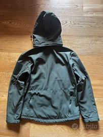 Giacca tattica leggera in softshell con cappuccio staccabile, 2 tasche interne con chiusura zip e strato esterno idrorepellente, antivento e traspirante composto da 92% poliestere e 8% spandex.