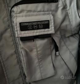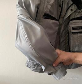 Giacca estiva da moto marca SPIDI taglia S. Misure torace 105, vita 90 e braccia 60 cm. Protezioni spalle e gomiti rimovibili. Polsini con velcri e bottone al collo regolabile. Varie tasche e aperture per favorire la ventilazione. Colore grigio chiaro riflettente. In ottime condizioni
