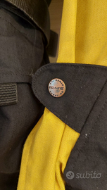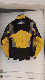 Giacca da moto marchio Spidi sistema H2out in tessuto, colore giallo/nero con inserti grigi. Imbottitura interna invernale staccabile, protezioni sui gomiti, spalle e schiena (staccabili). Esternamente: due tasche con chiusura a bottone, un taschino con cerniera e un taschino x telefono. Internamente: un taschino con cerniera.