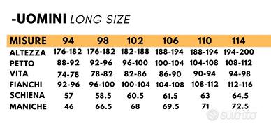 taglia 106 long size
