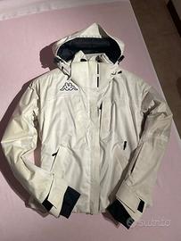 Vendo causa inutilizzo giacca da sci da donna taglia S colore bianco marca Kappa modello FISI 600, massima impermeabilità e massima traspirabilita, è una giacca di livello top con tutti gli accessori come tasche, cerniere, ecc., è in condizioni ottime ad eccezione del fatto che, come spesso accade alle cose da sci bianche in generale, sotto il forte sole di montagna si è un po’ ingiallita.