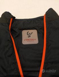 Vendo giacca tecnica Freddy originale, color nero con dettagli orange. Tessuto 100% poliestere, leggera e traspirante, ideale per sport, running o tempo libero.