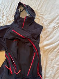Vendo giacca tecnica da alpinismo e montagna marca Mammut misura L nuova. La giacca ha tessuto elasticizzato apertura a doppio cursore sotto ascelle per areazione cappuccio multi regolabile e possibile indossarlo anche col casco. Nuova . Molte tasche interne ed esterne cerniere stagne, polsino interno anti intrusione neve così come internamente ha una minigonna elasticizzata staccabile perché non entri la neve facendo ad esempio fuori pista. Tasca interna per occhiali o maschera con anche panno in pelle per asciugare le lenti.