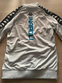 Giacca tuta Kappa SSC Napoli originale, colore bianco con dettagli neri e logo Napoli sul petto.