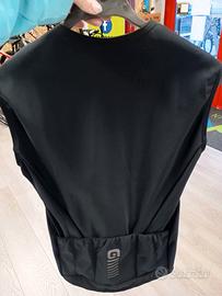 Gilet felpatino internamente, in fibra sintetica traspirante, 3 tasche sul retro, aderente, con grip per in silicone e schiena allungata per una maggiore protezione dall'aria. Colore nero