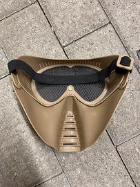 Gilet tattico con cinghie regolabili e maschera protettiva con rete.