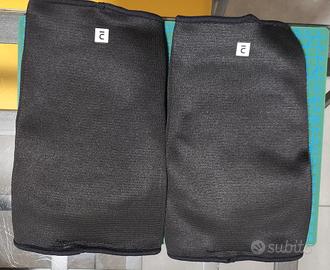 Coppia di ginocchiere nere marca Kipsta, ideali per proteggere le ginocchia durante l'attività sportiva. Taglia: M/L. Circonferenza sopra il ginocchio: 43/47 cm. Città: Bologna.