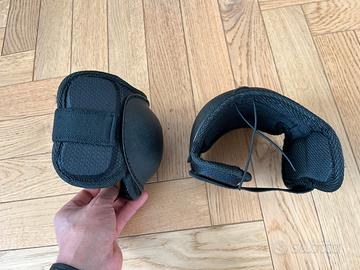 Coppia di protezioni per ginocchia per scherma storica / HEMA (Historical European Martial Arts), con protezioni rigide anche laterali, fasce elastiche con velcro per stringerle alla gamba e cordini elastici per agganciarle ai pantaloni. Indossate pochissimo, pari al nuovo.