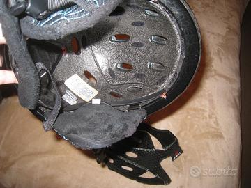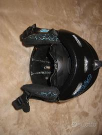 marca GIRO casco nero lucido con ricami turchesi, un cursore permette di regolare le 6 prese d' aria superiori da chiuse, a semichiuse ad aperte.