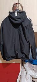 GIUBBINO SPORTIVO NERO CON CAPPUCCIO TIPO ADIDAS E BANDE VERTICALI BIANCHE. TAGLIA L