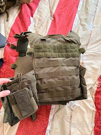 In ordine nelle foto vendo: Gilet tattico Shadow DEFCON 5 con zaino completo di camel Back, tasca porta caricatori esausti, e 2 accessori supplementari come porta documenti e tasca laterale, le volte che è stato usato si possono contare sulle dita di una mano, è praticamente nuovo, completo così lo vendo a 180€ trattabili Tattico nero con tasca porta radio e porta borraccia 30€ trattabili Tattico Verde con 5 tasche porta caricatori, porta radio,porta carichino e 2 tasche supplementari 70€ trattabili Per chi prende tutto insieme il prezzo è di 230€ Per maggiori informazioni e foto scrivetemi